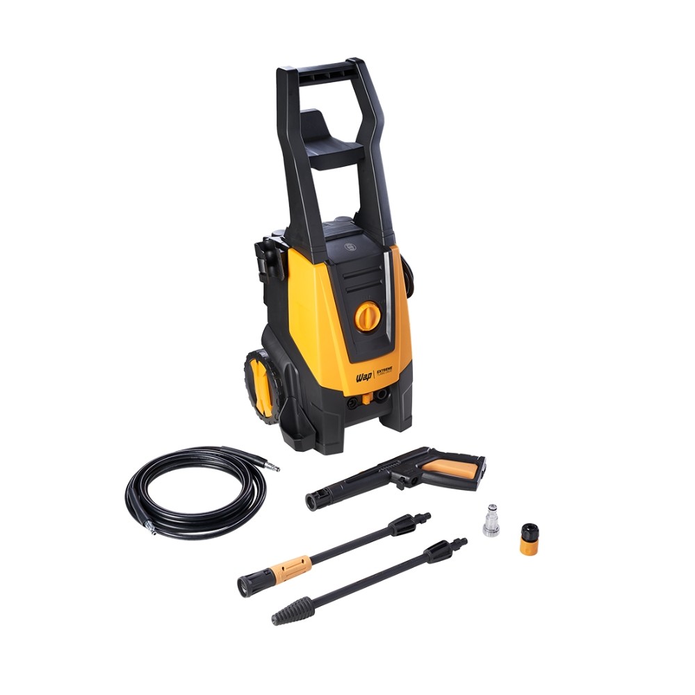 Lavadora Alta Pressão Wap Extreme Turbo 2800, 2450 PSI, 220V A WAP Extreme Turbo 2800 é uma lavadora de alta pressão semi-intensiva, equipada com motor de indução, 1900W de potência e 2450 PSI de pressão máxima. Projetada para uso frequente, ela oferece alto desempenho e economia de água, sendo perfeita para limpar áreas externas, veículos e superfícies que exigem uma limpeza mais profunda. Diferenciais: Motor de Indução: Garante maior durabilidade, vida útil prolongada e funcionamento mais silencioso em comparação com motores universais. Alta Pressão e Potência: Com 2450 PSI e 1900W, é capaz de remover sujeiras incrustadas e difíceis com facilidade. Economia de Água: Consome até 80% menos água em comparação com o uso de mangueiras comuns, tornando-a uma opção mais sustentável. Sistema Stop Total: Desliga automaticamente o motor ao soltar o gatilho, economizando energia, água e prolongando a vida útil do equipamento. Bicos Versáteis: Acompanha bico regulável (para jato concentrado, leque e shampoo) e bico turbo, que oferece maior poder de limpeza para sujeiras pesadas. Mangueira de Alta Pressão com Trama de Aço: 5 metros de comprimento, oferece resistência e maior durabilidade. Pistões em Aço Inox e Cabeçote de Alumínio: Proporcionam maior resistência e durabilidade à bomba. Praticidade e Mobilidade: Possui alça e rodas para facilitar o transporte e um porta-acessórios integrado para organizar os bicos e pistola. Engate Rápido: Facilita a montagem e desmontagem da mangueira, dispensando o uso de ferramentas. Dicas de Uso: Pré-lavagem: Para sujeiras muito pesadas, aplique um produto específico e deixe agir por alguns minutos antes de usar a lavadora. Escolha do Bico: Distância da Superfície: Mantenha uma distância adequada da superfície a ser limpa para evitar danos, especialmente em materiais mais sensíveis. Movimentos Uniformes: Faça movimentos uniformes e consistentes para garantir uma limpeza homogênea. Armazenamento: Após o uso, esvazie completamente a mangueira e a lavadora para evitar acúmulo de água e possíveis danos, especialmente em climas frios. Guarde em local seco e protegido. Filtro de Entrada de Água: Verifique e limpe o filtro de entrada de água regularmente para evitar entupimentos e garantir o bom funcionamento da máquina. Segurança: Utilize sempre equipamentos de proteção individual (EPIs), como óculos de segurança, e nunca direcione o jato para pessoas ou animais. Melhor Função do Produto: A melhor função da WAP Extreme Turbo 2800 é a remoção eficiente e rápida de sujeiras incrustadas e pesadas em grandes áreas e superfícies resistentes. Seu conjunto de alta pressão (2450 PSI), motor de indução e bico turbo a torna ideal para tarefas como: Ficha Técnica: Modelo: Lavadora de Alta Pressão WAP Extreme Turbo 2800 Tensão/Voltagem: 220V Potência Elétrica: 1900W Pressão Máxima: 2450 PSI (17 MPa) Vazão Máxima: 360 L/h (6 L/min) Motor: Indução Tipo de Bomba: Axial com cabeçote de alumínio Pistões: 3 pistões de Aço Inox Frequência: 60 Hz Mangueira de Alta Pressão: 5 metros com trama de aço Cabo Elétrico: 5 metros Plugue: 3 pinos Temperatura Máxima da Água de Entrada: 40 °C Vazão Mínima de Alimentação de Água: 8 L/min Sistema Stop Total: Sim Bicos Inclusos: 1 Lança com Bico regulável (concentrado, leque e shampoo) e 1 Bico Turbo Aplicador de Detergente: Embutido, com controle na lança Recursos Adicionais: Alça para transporte, rodas, porta-acessórios, trava de segurança da pistola, engate rápido, filtro de entrada de água. Cor: Amarelo com Preto Certificação: INMETRO Garantia: 01 Ano