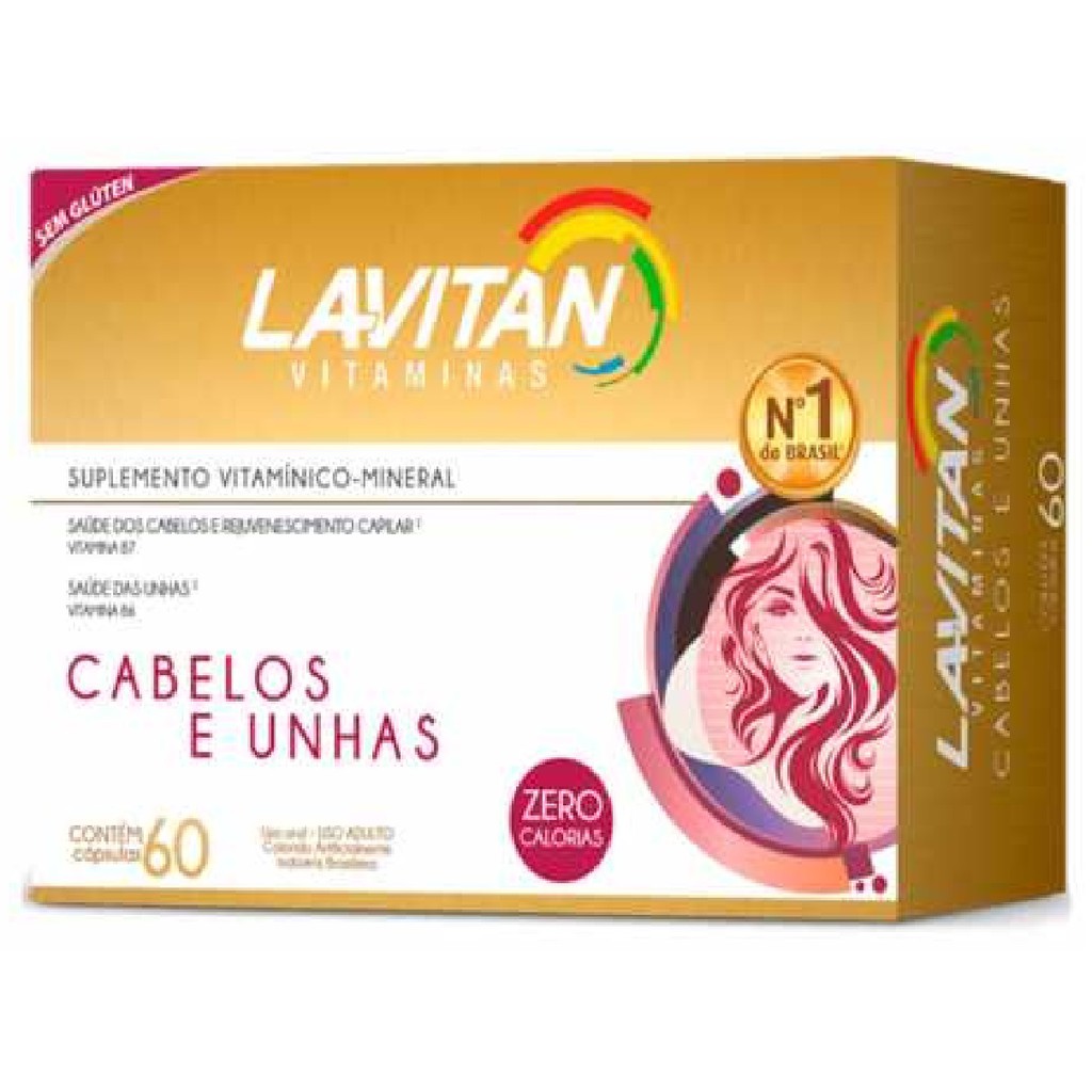 Lavitan Hair é um suplemento focado na nutrição dos cabelos, que auxilia no crescimento e fortalecimento dos fios. Que trás como conceito a nutrição capilar de dentro para fora. Cabelos lindos, forte e saudáveis não é uma coisa muito fácil de se conseguir mulheres vaidosas que tem uma atenção especial com seus cabelos tem aproveitar essa oportunidade única. ATIVOS: - Vitamina B6: Favorece a respiração das células e ajuda no metabolismo das proteínas. Além de ser necessária para o bom funcionamento do sistema nervoso. Mantém a integridade funcional do cérebro e evita o estresse, um dos agentes precursores da queda de cabelo. - Biotina: É também conhecida como vitamina H ou B7. A Biotina contribui para que o metabolismo funcione corretamente e sua carência pode ocasionar queda de cabelo. - Cromo: Contribui para o sistema imunológico. Importante para proteger as células da ação dos radicais livres. - Zinco: É importante para o bom funcionamento do sistema de defesas do organismo. É necessário para a divisão celular, auxiliando no crescimento do cabelo; para a estrutura da pele e para a cicatrização. ALÉRGICOS: Contém derivados do leite. Contém Lactose. Não contém Glúten. Indicação: Auxilia no crescimento e fortalecimento capilar. Modo de usar: Ingerir 1 cápsula ao dia.
