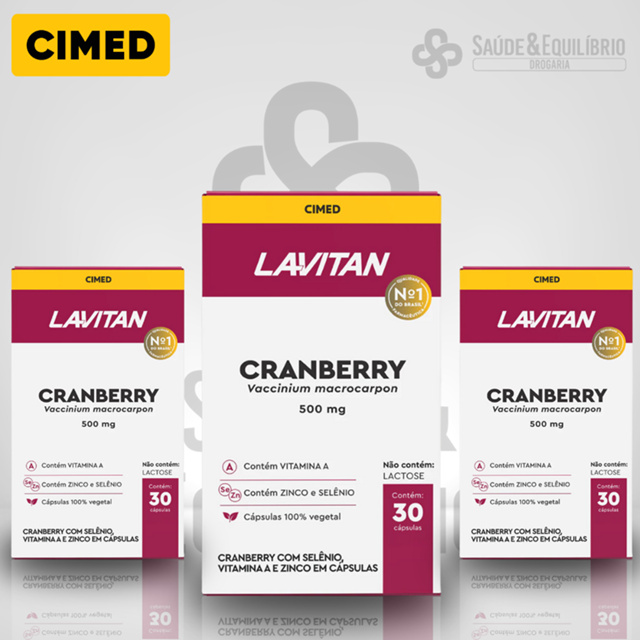 Lavitan Cranberry 500mg com Vitamina A Zinco Selênio Cápsulas Vegetais Cimed 30 Cápsulas