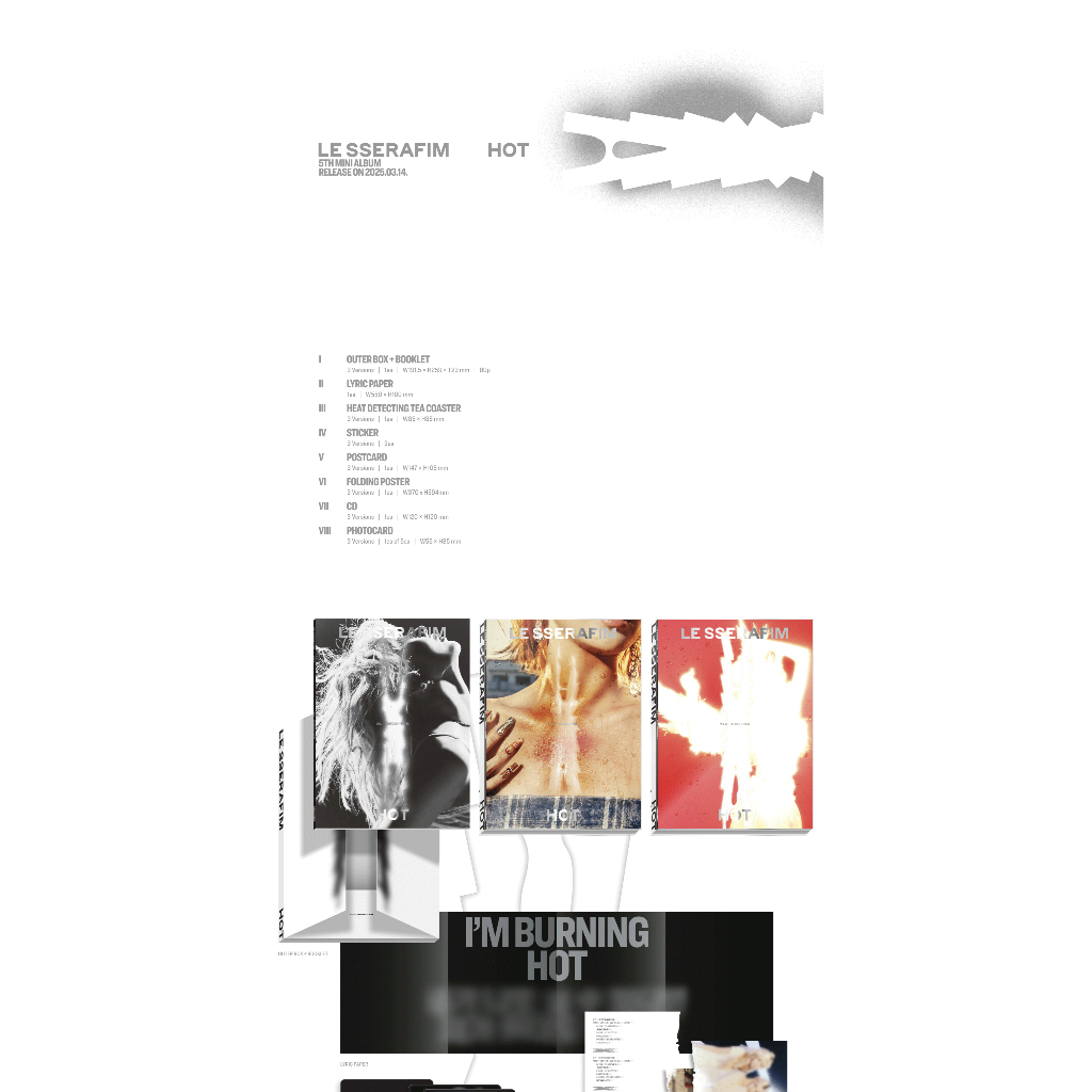 Atualizado: 2025-02-17 Data de lançamento: MAR 14, 2025 💽Mini Álbum LE SSERAFIM 5Th [QUENTE] Versões -CAIXA Externa + LIVRO: 3 Versões / 1ea / W191,5 X H259 X T23 (mm) / 80p Papel LÍRICO: 1ea / W550 X H180 (mm) - PAPEL LÍRICO: 1ea / W550 X H180 (mm) -CADRO De CHÁ DE DETEÇÃO DE TÉU: 3 Versões / 1ea / W85 X H85 (mm) Adesivo: 3 Versões / 3ea Cartão -POSTCARD: 3 Versões / 1ea / W147 X H105 (mm) Pôster DOBRADOR: 3Versões / 1ea / W370 X H594 (mm) -CD-R: 3 Versões / 1ea / W120 X H120 (mm) -PHOTOCARD: 3 Versões / 1ea de 5ea / W55 X H85 (mm)