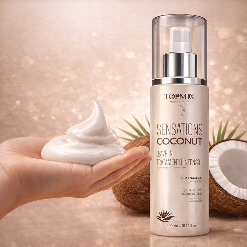 Leave In Coconut 10 em 1 TopMix Profissional – Protetor Térmico, Brilho, Hidratação e Anti-Frizz