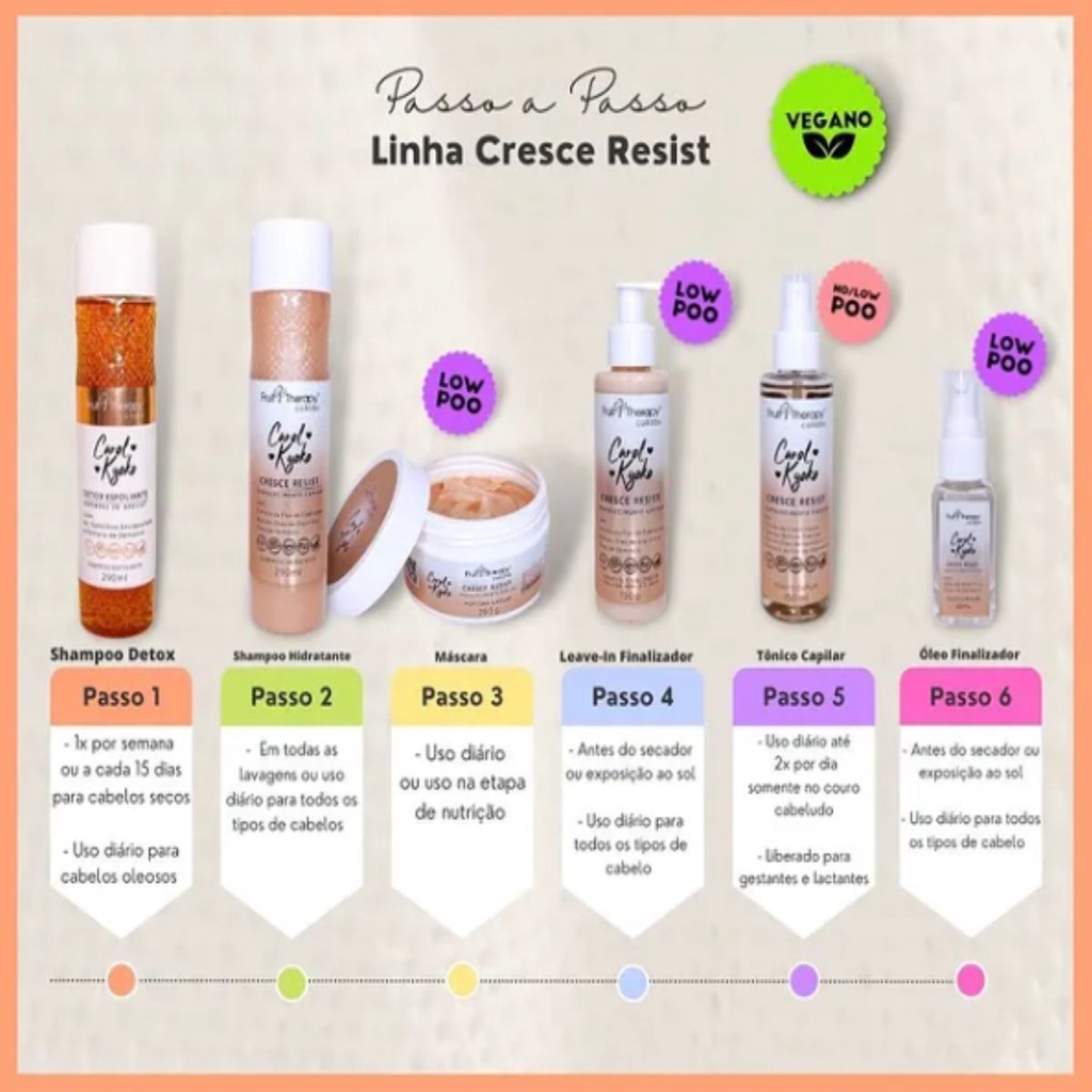A linha Fruit Therapy Collabs Cresce Resist, co-criada com a especialista em cosméticos Carol Kyoko, traz o que há de melhor em inovação e tecnologia cosmética aliada ao poder das frutas! Leave-in Finalizador Cresce Resist Fruit Therapy Collabs Carol KyokoIndicação Para todos os tipos de cabelos.O Leave-in Finalizador Cresce Resist contém em sua formulação a combinação de Extrato da Flor de Edelweiss, que age no encorpamento dos fios, a Biotina e o Óleo de Alecrim, que fortalecem os fios para auxiliar em um crescimento saudável. Além disso possui Óleo de Damasco que confere maciez e maleabilidade aos fios. Confere proteção térmica, solar e brilho único para os fios. O Óleo Capilar confere brilho e auxilia a selar as pontas dos fios. Informações adicionais Leave-in Finalizador Cresce Resist - Fortalecimento Capilar - Leave-in: pH 3,5 - 4,5- Produtos liberados para Gestantes e Lactantes;- Livre de Petrolatos e Parabenos;- Produtos Veganos e não testados em animais;- Com Ingredientes naturais- Livre de Transgênicos (GMO Free)- Leave-in Finalizador liberado para Low Poo.Precauções:- Para uso externo. Manter fora do alcance de crianças. Em caso de contato com os olhos, lavar imediatamente. Conteúdo:1 Leave-in finalizador Cresce Resist Fruit Therapy Collabs Carol Kyoko - 150mL
