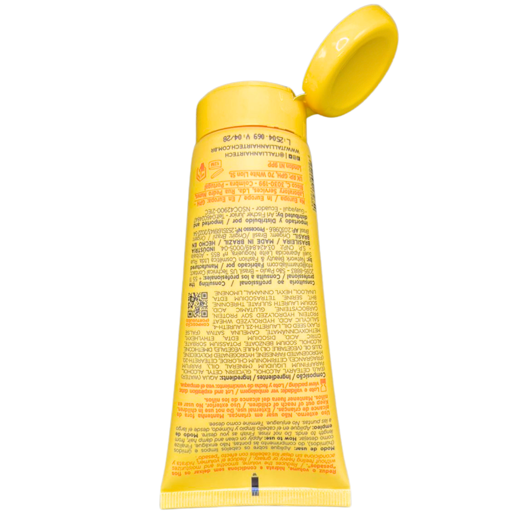 Reduz o volume com hidratação e condicionamento sem pesar nos fios. A fórmula do Leave-in Hidratante Trivitt protege do frizz ao longo do dia e conserva a hidratação no interior da fibra por mais tempo para que o cabelo fique macio, desembaraçado e com brilho. Ativos: Filtro Solar: absorve de forma eficiente a radiação UV-B. Protege os fios contra os danos provocados pela radiação UV-B. É resistente à água. Queratina: os cabelos são constituídos principalmente por essa proteína, composta por uma sequência de 18 aminoácidos interligados por pontes de hidrogênio, dissulfeto (enxofre) e salinas. Como é hidrolisada, apresenta baixo peso molecular, o que facilita sua penetração através das cutículas. Deposita-se sobre as regiões que apresentam danos, restaurando os fios Reequilibra o teor de água e a distribuição de cargas elétricas da fibra capilar Após penetrar através das cutículas, mantém as mesmas seladas (pH adequado para o fechamento das escamas) Óleo de Camelina Dourada: ingrediente de origem 100% vegetal, obtido da planta “Gold of Pleasure” (Camelina sativa). Fornece a proporção ideal de Ômegas 3 e 6 para restaurar o teor lipídico (oleosidade natural) da fibra capilar Combate o toque áspero dos cabelos ressecados e fragilizados Recupera a elasticidade e flexibilidade dos fios Modo de Uso: Espalhe sobre as mãos uma quantidade suficiente do produto e aplique sobre os cabelos limpos e úmidos, do comprimento às pontas. Não enxágue. Deixe secar naturalmente. Precauções: Uso externo. Não usar em crianças. Mantenha fora do alcance de crianças. Prazo de Validade 36 meses.