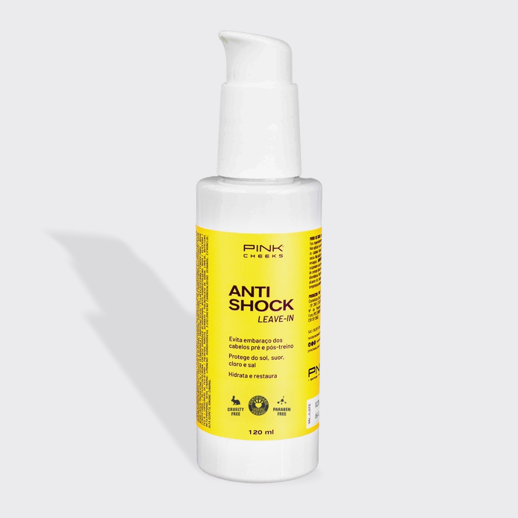 Leave-in Anti Shock Pré-Treino 120ml. O Leave-in hidratante anti-frizz, Anti Shock, é um fluido capilar com protetor solar ideal para ser usado antes e depois da prática esportiva ao ar livre. Também conhecido como ""antininho"", forma uma película protetora nos fios, evitando o embaraçamento, bolas de nós e o ressecamento dos fios. Além do filtro solar, a composição do Anti Shock apresenta ativos consagrados e inovadores que protegem e recuperam os fios. Combinação de ativos que proporciona a formação de uma película protetora sobre os cabelos, garantindo hidratação profunda, brilho, sedosidade e restauração dos fios naturais ou quimicamente tratados; Complexo de queratinas hidrolisadas, ceramidas e silicones, que penetram no fio de cabelo promovendo restauração, hidratação, brilho e fechamento das cutículas. Facilitam o penteado dos fios úmidos e secos e diminuem o frizz; A associação do Genamim SPA ao Styleze W20 promove ação anti-frizz, proteção térmica e condicionamento dos fios, o que facilita o penteado e mantém os cabelos disciplinados; Sua aplicação pré-treino protege os fios contra o suor, o calor e os danos causados pelo sol e ainda previne o embaraço, o aparecimento de frizz melhorando a penteabilidade. Após o treino, com os cabelos limpos, a aplicação do Anti Shock, restaura e trata os fios, devolvendo o brilho, a hidratação natural, facilitando o penteado e desembaraço dos fios. DADOS TÉCNICOS Uso Pré e Pós treino Indicado para todo tipo de cabelo Com filtro solar e protetor térmico Cabelo macio, hidratado e sem frizz Protege do sol, suor, cloro e sal Vegano e Livre de Parabenos Não testado em animais Dermatologicamente testado MODO DE USAR Agite bem antes de usar. Aplique, nos cabelos secos ou úmidos, uma quantidade generosa para envolver os fios, massageando suavemente por todo o comprimento e pontas. Não enxague. Após a aplicação, escove os fios. Sua aplicação pré-treino protege os fios contra suor, o calor e os danos causados pelos raios ultravioletas do sol e ainda previne o embaraço, o aparecimento de frizz e melhora a penteabilidade. Após lavar os cabelos, pode ser usado como leave-in, em pequenas quantidades passando pelo comprimento e pontas (sem enxágue). O Anti Shock possui protetor térmico, podendo ser finalizado com secador ou chapinha, se desejar. Não aplicar na raiz do cabelo. COMPOSIÇÃO AQUA; CETEARYL ALCOHOL; DIVINYLDIMETHICONE / DIMETHICONE COPOLYMER (AND) C12-13 PARETH-23 (AND) C12-13 PARETH-3 / AQUA; AMODIMETHICONE / C12-14 SEC-PARETH-7 / C12-14 SEC-PARETH-5 / AQUA; STEARAMIDOPROPYL DIMETHYLAMINE; BIS(C13-15 ALKOXY) PG-AMODIMETHICONE; BEHENTRIMONIUM CHLORIDE; POLYQUATERNIUM-55 / POLYQUATERNIUM-37 / PPG-1 TRIDECETH-6 / PROPYLENE GLYCOL DICAPRYLATE/DICAPRATE; (M) – (AND) PARAFFINUM LIQUIDUM; GLYCERIN; PARFUM; DIMETHICONOL / TEA-DODECYLBENZENESULFONAT / AQUA; LACTIC ACID; POLYSILICONE-15; TETRASODIUM DISUCCINOYL CYSTINE / PROPYLENE GLYCOL / ETHYLEHYLGLYCERIN / PHENOXYETHANOL / AQUA; PHENOXYETHANOL / METHYLISOTHIAZOLINONE; DISODIUM EDTA; BHT; AQUA / GLYCERIN / PEG-8 / PEG-8/SMDI COPOLYMER / PALMITOYL MYRISTYL SERINATE / SODIUM POLYACRYLATE; LINALOOL; BUTHYLPHENYL METHYLPROPIONAL; HEXYL CINNAMAL; LIMINENE; HIDROXYISOHEXYL 3-CICLOHEXENE CARBOXYALDEHYDE; GERANIOL; CITRONELLOL; ALPHA-ISOMETHYL IONONE; CINNAMAL. ANVISA: 25351.461033/2015-58 A PINK CHEEKS não realiza testes de seus produtos em animais. Nossos testes são realizados em pessoas voluntárias, através de laboratórios credenciados. A ANVISA considera hipoalergênico os produtos que passaram por testes de sensibilização realizados em humanos em laboratórios especializados. Hipoalergênicos são produtos com menos chance de causar alergia. No entanto, não há garantias de que o produto não causará alergia em 100% das pessoas, já que cada pessoa tem uma reação diferente. A PINK CHEEKS não classifica este produto como hipoalergênico, uma vez que o produto não passou por testes. Você pode ter acesso à composição de todos os produtos da PINK CHEEKS através da página de cada produto em nosso site.