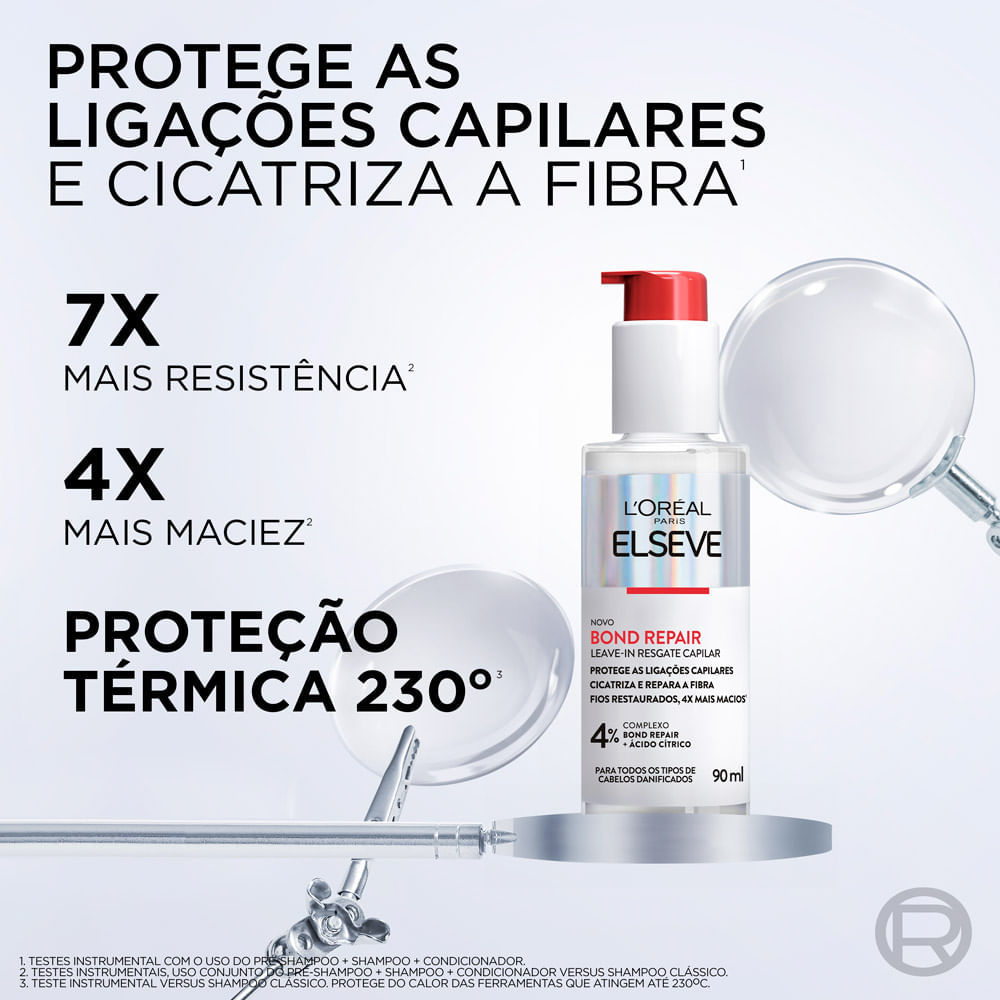 Leave-In Resgate Capilar L'Oréal Paris Elseve Bond Repair A linha Bond Repair de L’Oréal Paris contém em sua fórmula o Ácido Cítrico que age na camada mais profunda da fibra , o córtex, e recria as li