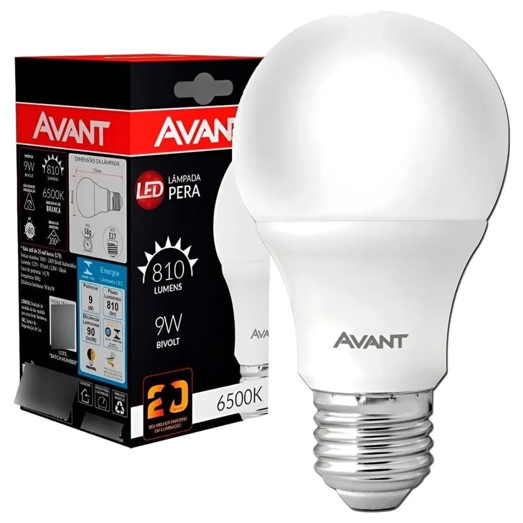 Led Pera Branco Frio 9W Bivolt Avant 6500k