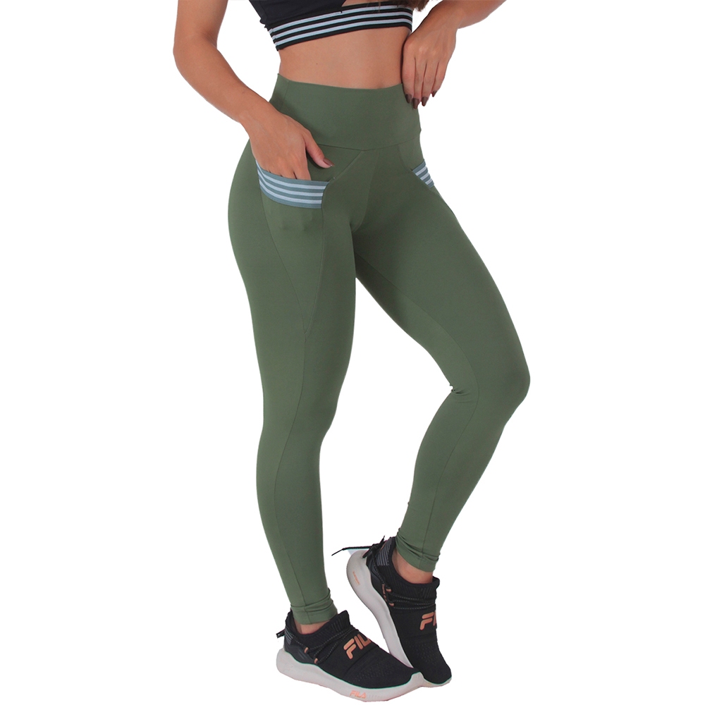 Legging Feminina Poliamida Cintura Alta Bolsos Moda Fitness Calça Feminina