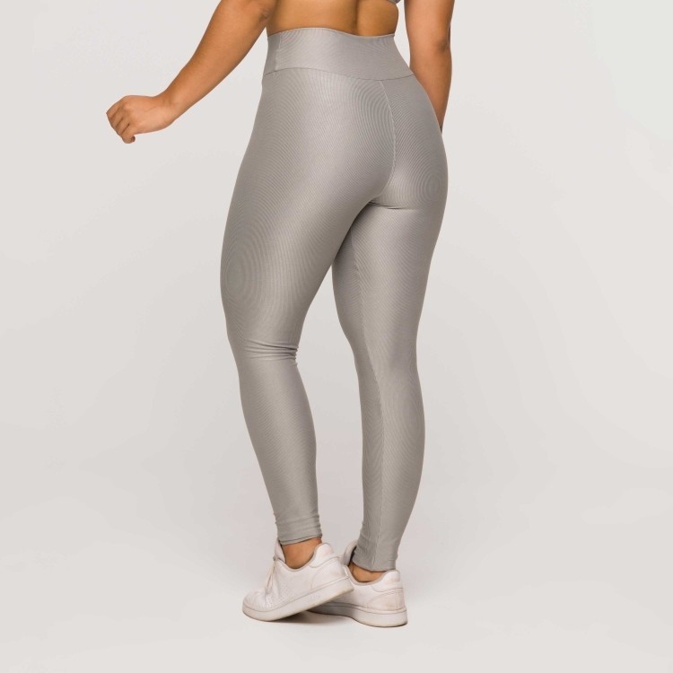 Legging Fitness Feminina Academia Poliamida Textura Cinza Prata Crossfit