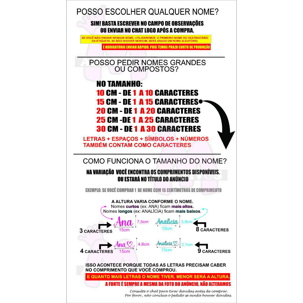 🔺🔺LEIA PARA ENTENDER TUDO ANTES DE COMPRAR 🔺🔺 ⚫Leia com atenção a descrição para evitar problemas. ⚫Tire todas as suas dúvidas antes de finalizar a compra. ⚫Confira se o endereço de entrega está correto. ___________________________________________ O que fazemos: ✅ Fazemos qualquer nome. ✅ A fonte será a mesma mostrada na foto do anúncio. (Não alteramos) ✅ Cor: Prata Holográfico com fundo preto ✅ Tamanho: a escolher na variação. Lembrando que não é possível escolher a altura, pois ela é proporcional à quantidade de letras no nome. É possível escolher apenas o comprimento. _____________________________________________ ⚠️ Como funciona: O anúncio refere-se a 1 unidade ⚠️⚠️ Importante: ➡ No tamanho de 10cm - de 1 a 10 letras ➡ No tamanho de 15cm - de 1 a 15 letras ➡ No tamanho de 20cm - de 1 a 20 letras ➡ No tamanho de 25cm - de 1 a 25 letras ➡ No tamanho de 30cm - de 1 a 30 letras 🟡 Caso o nome não seja enviado, entenderemos que deseja usar o nome do destinatário, e faremos com o primeiro nome dele na etiqueta. ⚫Envie o nome desejado imediatamente pelo chat ou na observação. ⚫Não adianta insistir em mudar as regras, elas são fixas. _____________________________________________ Envio: 📦 Enviamos no dia seguinte à compra. 📦 Não realizamos entrega direta até sua casa — dependemos dos prazos da plataforma ou dos Correios. Em caso de qualquer problema com o transporte, entre em contato diretamente com a plataforma, para que possam verificar com a transportadora responsável. ______________________________________________ ⏳ Importante: Se não pode esperar os prazos da Plataforma, por favor, não compre. Avalie apenas o produto. Não avalie o prazo de entrega, pois isso não está sob nosso controle. ⚫Não enviamos adesivos com defeitos, rasgados ou manchados. ⚫Nosso processo de embalagem passa por uma conferência rigorosa, e todo o procedimento é gravado em vídeo para garantir que tudo seja enviado corretamente. 🔍 Obs.: A cor pode variar até 15% em relação à tela do computador ou celular. _____________________________________ Resumindo: Leia, tire suas dúvidas e envie o nome correto. Qualquer descuido será de sua responsabilidade. 😊 _____________________________________ ⚫Produzido em vinil com recorte eletrônico. ⚫Acompanha máscara de transferência para aplicação. ⚫Montado manualmente. 🛑Caso não saiba colar, favor procurar um profissional Boas compras! Adesivo de nome para cadernos / motos / carros / caminhões / papel / plástico / capacetes / figurinha de nome