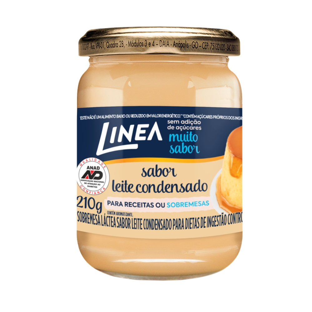 Linea Doce de Leite Tradicional possui uma cremosidade que vem do cozimento. Sem adição de açúcares, é adoçado com sucralose, o adoçante derivado da cana de açúcar que contribui para a redução de sódio e calorias. Possui baixo teor de sódio, contém apenas 50kcal por colher, e pode ser utilizado para o preparo de doces ou sobremesas. INGREDIENTES: Leite integral, cloreto de sódio, edulcorantes: sorbitol e sucralose, conservador sorbato de potássio, regulador de acidez bicarbonato de sódio, espessante pectina, estabilizante citrato de sódio e aroma natural de leite condensado. ALÉRGICOS: CONTÉM LEITE. PODE CONTER NOZES. CONTÉM LACTOSE. NÃO CONTÉM GLÚTEN.