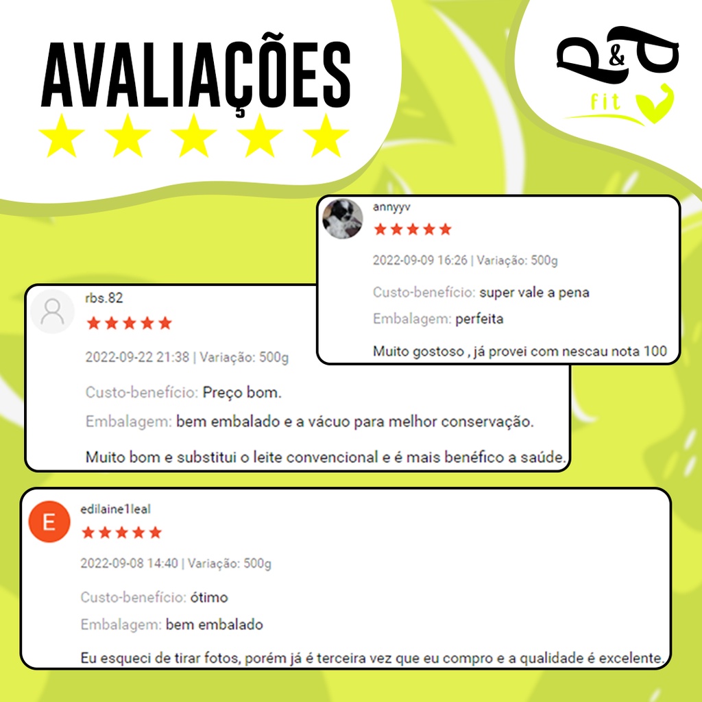 Está cansado de se decepcionar com produtos naturais comprados online? Suas castanhas chegaram murchas? Velhas? O produto entregue não corresponde as fotos do anúncio? Pare de correr riscos desnecessários, aqui na P&P você não precisa se preocupar com nada disso! Alimentação é coisa séria e por isso você deve comprar com uma empresa especializada em venda desse produto pela internet. Nos de um voto de confiança e você irá se surpreender com a qualidade do nosso produto e serviço!! Na P&P Garantimos qualidade e bom preço. Aqui você encontrará tudo que precisa se tratando de produtos naturais! Na P&P quem compra, volta! Sobre o produto: O leite de coco em pó é considerado um super alimento por médicos e especialistas, sendo uma boa opção ao leite de vaca e para aqueles que preferem os leites vegetais para compor sua dieta ou ter uma boa saúde. A principal característica desse superalimento é a grande quantidade de ácido láurico (gordura boa). Vale a pena consumir esse alimento cheio de nutrientes, onde o pó extraído da polpa do coco que foi descascada, cortada, moída, prensada, pasteurizada, homogeneizada e seca por pulverização. Ingredientes: Leite de Coco, maltodextrina e espressante Goma Arábica O leite de coco em pó pode ser consumido da mesma forma que o leite de vaca, podendo ser utilizado puro ou em preparações como café com leite, vitaminas, bolos, biscoitos e tortas. Não existe uma quantidade ideal para ser consumida, mas quem deseja emagrecer deve consumir apenas 1 ou 2 copos por dia. Benefícios do leite de coco em pó: 1- Fortalece os ossos 2- Aumenta o Colesterol Bom 3- Excelente antioxidante 4- Previne doenças cardíacas 5- Auxilia a digestão 6- Tonifica a pele e fortalece os cabelos 7- Anticancerígeno, antimicrobianos, antibacteriano e antiviral 8- Fortalece o sistema imunológico PERGUNTAS E RESPOSTAS – LEITE DE COCO EM PÓ Leite de coco em pó engorda? Não. Mas, o leite de coco em pó não faz milagres. Para que o organismo consiga aproveitar melhor todos os nutrientes, é essencial consumir também verduras, legumes e frutas. A ingestão de açúcares, frituras, gorduras trans e saturadas, etc. precisa ser evitada. Um cuidado muito importante é a prática de atividades físicas, que devem ser feitas, pelo menos, três vezes por semana. Sobre a empresa: A P&P Linha Fit é uma empresa especializada em produtos naturais. Com uma estrutura de ponta para a manipulação de alimentos, fracionamos as sacas e vendemos em embalagens ideias para o nosso consumidor final. A política da Garantia de Satisfação faz com que nossos produtos passem por um rigoroso controle de qualidade levando o melhor produto a mesa do nosso cliente com um preço justo. Obrigado por comprarem nossos produtos! Sobre o envio: A PRONTA ENTREGA- ENVIO EM ATÉ 24 HORAS ÚTEIS! DÚVIDAS DE SEMPRE: 1) Em quando tempo meu pedido será enviado? ENVIAMOS O SEU PRODUTO EM ATÉ 24 HORAS APÓS A APROVAÇÃO DO PAGAMENTO. 2) E se meu produto não chegar? TODOS OS PACOTES SEGUEM COM O PROTOCOLO DE RASTREIO, E VOCÊ PODE CONSULTAR DIARIAMENTE NO SITE DOS CORREIOS, PARA VER ONDE ELE ESTA. CASO OCORRA ALGUM SINISTRO, A MERCADORIA ESTÁ ASSEGURADA PELO SISTEMA DO MARKETPLACE E VOCÊ RECEBE SEU DINHEIRO DE VOLTA. 3) Qual a validade? VOCÊ IRÁ ENCONTRAR A VALIDADE ASSIM COMO O NÚMERO DO LOTE NA PARTE SUPERIOR DA EMBALAGEM. TRABALHAMOS APENAS COM PRODUTOS FRESCOS, DESSA FORMA VOCÊ RECEBERÁ O PRODUTO COM UMA VALIDADE EXTENSA. DEPENDENDO DO PRODUTO, DE ATÉ 2 ANOS. Ficou com alguma dúvida? Entre em contato com a gente!