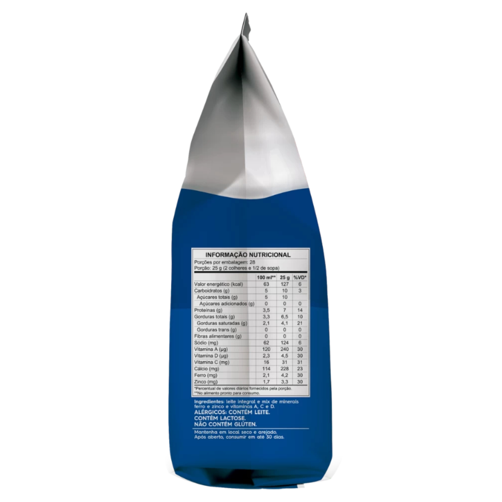 Leite em Pó Integral Piracanjuba 700g O Leite em Pó Integral Piracanjuba 700g é a escolha ideal para quem busca nutrição, praticidade e qualidade em um só produto. Produzido a partir de leite de alta qualidade, passa por um rigoroso processo de secagem que preserva seu sabor autêntico e os nutrientes essenciais, oferecendo mais saúde e energia no dia a dia. Com sua textura macia e solubilidade rápida, o leite em pó integral Piracanjuba é perfeito tanto para consumo direto quanto para o preparo de receitas, garantindo sempre um resultado saboroso e nutritivo. Características do Produto: Marca: Piracanjuba Tipo: Leite em Pó Integral Peso Líquido: 700g Embalagem prática e econômica, ideal para o consumo familiar Solúvel instantaneamente: fácil de preparar, sem formar grumos Benefícios: Fonte de cálcio, essencial para ossos e dentes fortes Rico em proteínas, que auxiliam na construção e manutenção muscular Contém vitaminas e minerais importantes para o equilíbrio nutricional Energia e nutrição para toda a família Versátil: pode ser consumido puro ou em diversas receitas Modo de Preparo: Para preparar 1 copo de leite (200ml): adicione 2 colheres de sopa (26g) de leite em pó em um copo e complete com água morna ou fria. Misture bem e consuma. A quantidade pode variar conforme sua preferência de sabor e cremosidade. Sugestões de Uso: Ideal para o café da manhã e lanches Pode ser usado em receitas como bolos, pudins, pães, vitaminas e sobremesas Ótima opção para enriquecer o sabor de bebidas quentes ou frias Armazenamento: Conservar em local seco, fresco e arejado Após aberto, manter bem fechado e consumir dentro do prazo indicado na embalagem Com o Leite em Pó Integral Piracanjuba 700g, você garante nutrição completa, sabor incomparável e a confiança de uma das marcas mais reconhecidas do Brasil. Perfeito para quem busca praticidade no dia a dia sem abrir mão de qualidade e saúde.