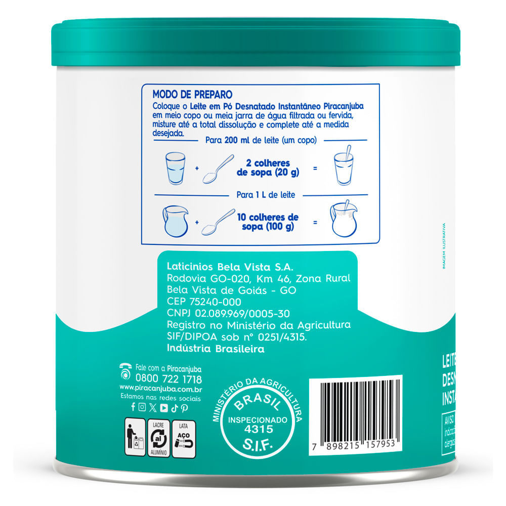 Leite em Pó Piracanjuba Desnatado Instantâneo Lata 300g é bom?