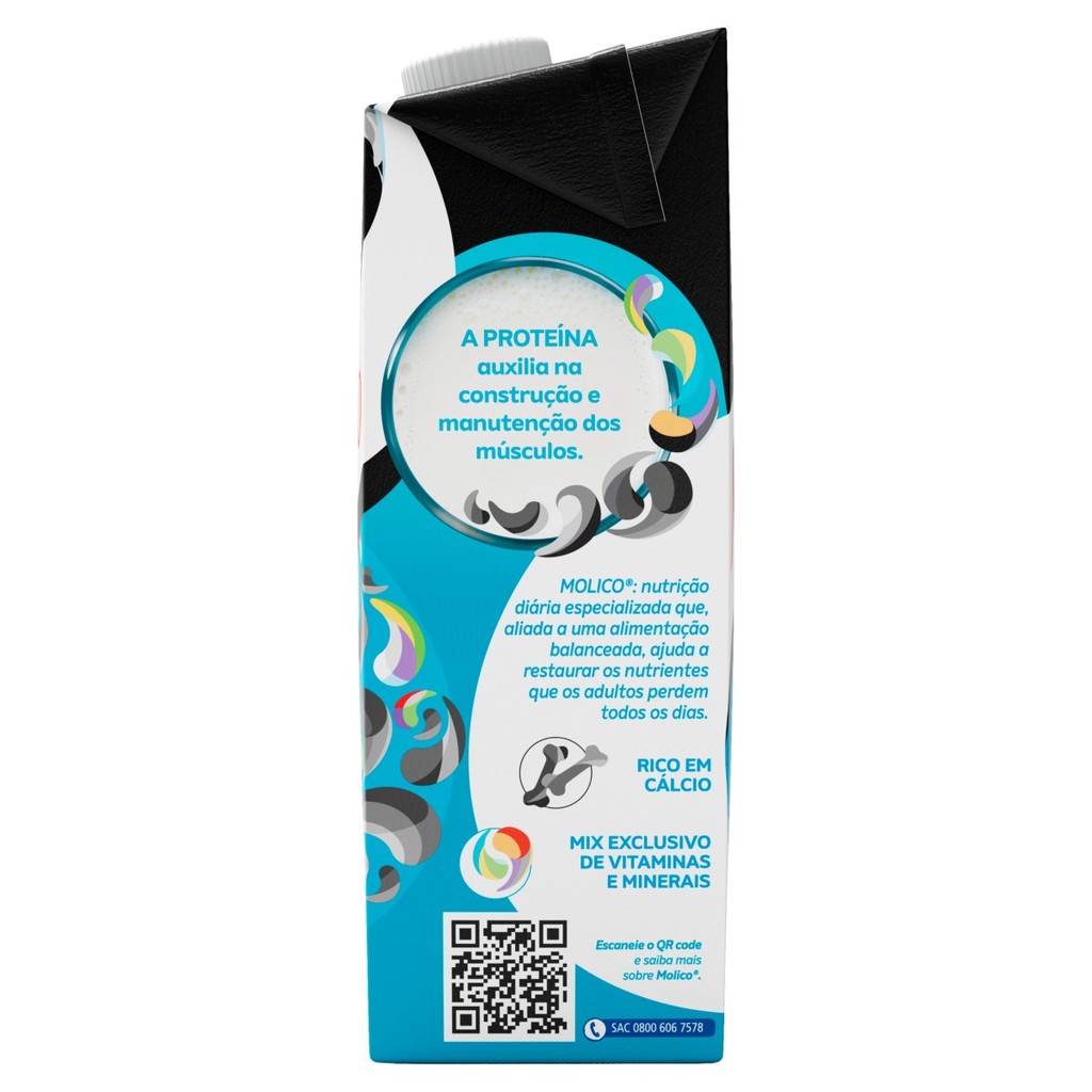 O Leite Molico +Proteína Zero Lactose foi desenvolvido para quem busca uma nutrição prática, saudável e com mais benefícios para o corpo. Cada copo oferece 10g de proteínas, que auxiliam na manutenção e fortalecimento dos músculos, tornando-o ideal para quem pratica atividades físicas ou deseja uma alimentação equilibrada no dia a dia. Além disso, é zero lactose, perfeito para pessoas com intolerância ou que desejam uma digestão mais leve, sem abrir mão do sabor e da qualidade. Produzido com leite UHT desnatado, tem baixo teor de gorduras e é enriquecido em proteínas, sendo um grande aliado de uma rotina saudável. Com o Molico +Proteína, você garante nutrição diária, sabor suave e energia para encarar os desafios do dia.