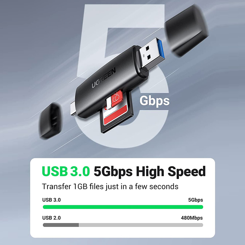 Leitor de Cartão 2 em 1 UGREEN 80191 USB A + USB-C Super Prático
