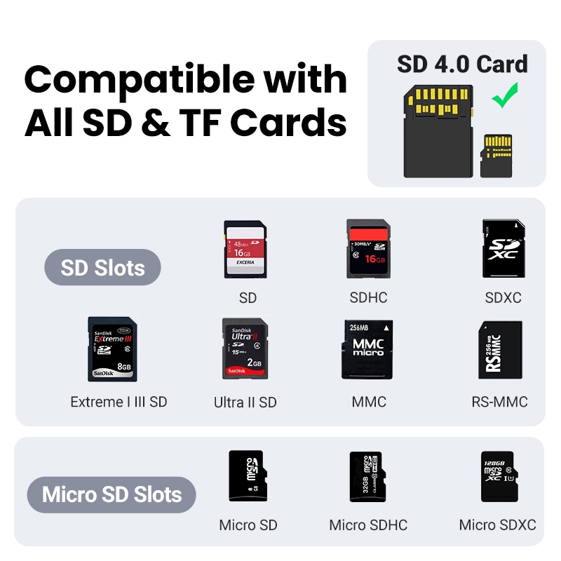 Leitor De Cartões UGREEN USB C Para SD/TF 4.0 312MB/s MicroSD Adaptador De Memória Até 2TB Max TV Portátil MacOS Windows