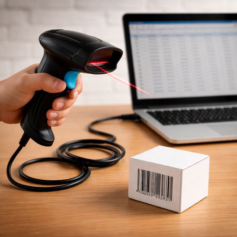 Leitor de Código de Barras 1D USB Manual p/ Caixa Estoque Varejo e Automação Comercial