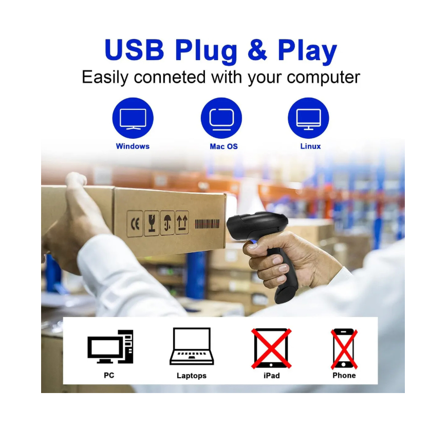 Leitor De Código De Barras Qr Code Sem Fio 2d Danfe Wireless Usb