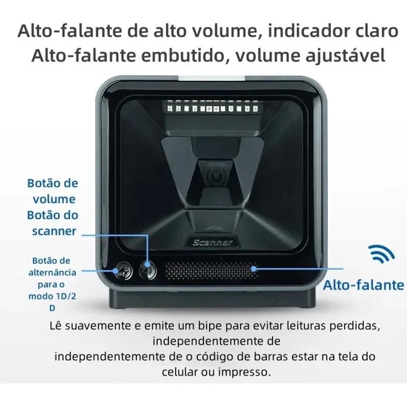 Leitor Scanner de código de barras 1d e 2d Qr Code Fixo Pdv Mesa Interface USB Alta Velocidade