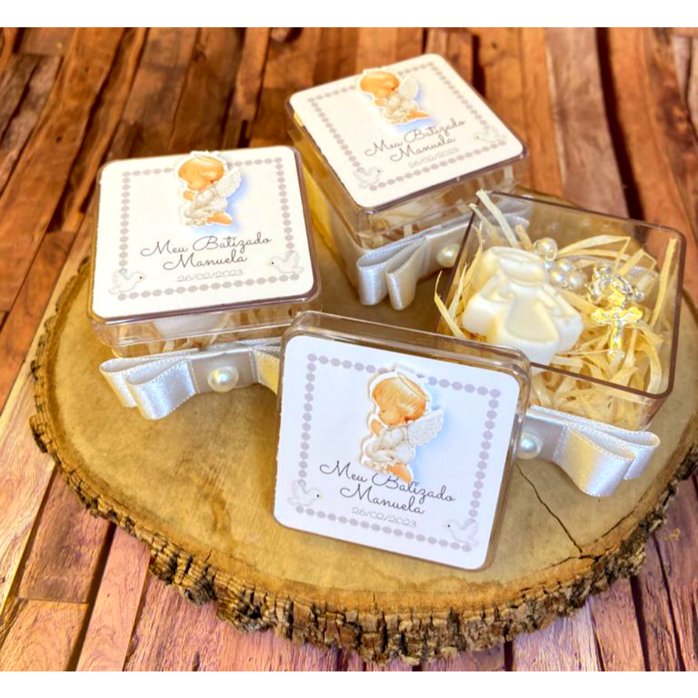 Lembrança Batizado caixinha com sabonete e terço batismo personalizado