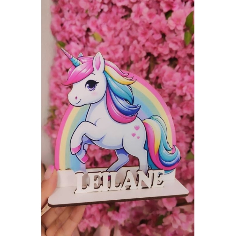 Lembrancinha Centro de mesa Unicórnio Fofinho Personalizado com nome para aniversário em MDF adesivado