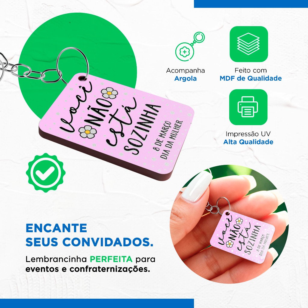 Lembrancinha Chaveiro Dia da Mulher Não Está Sozinha Feito Em Mdf