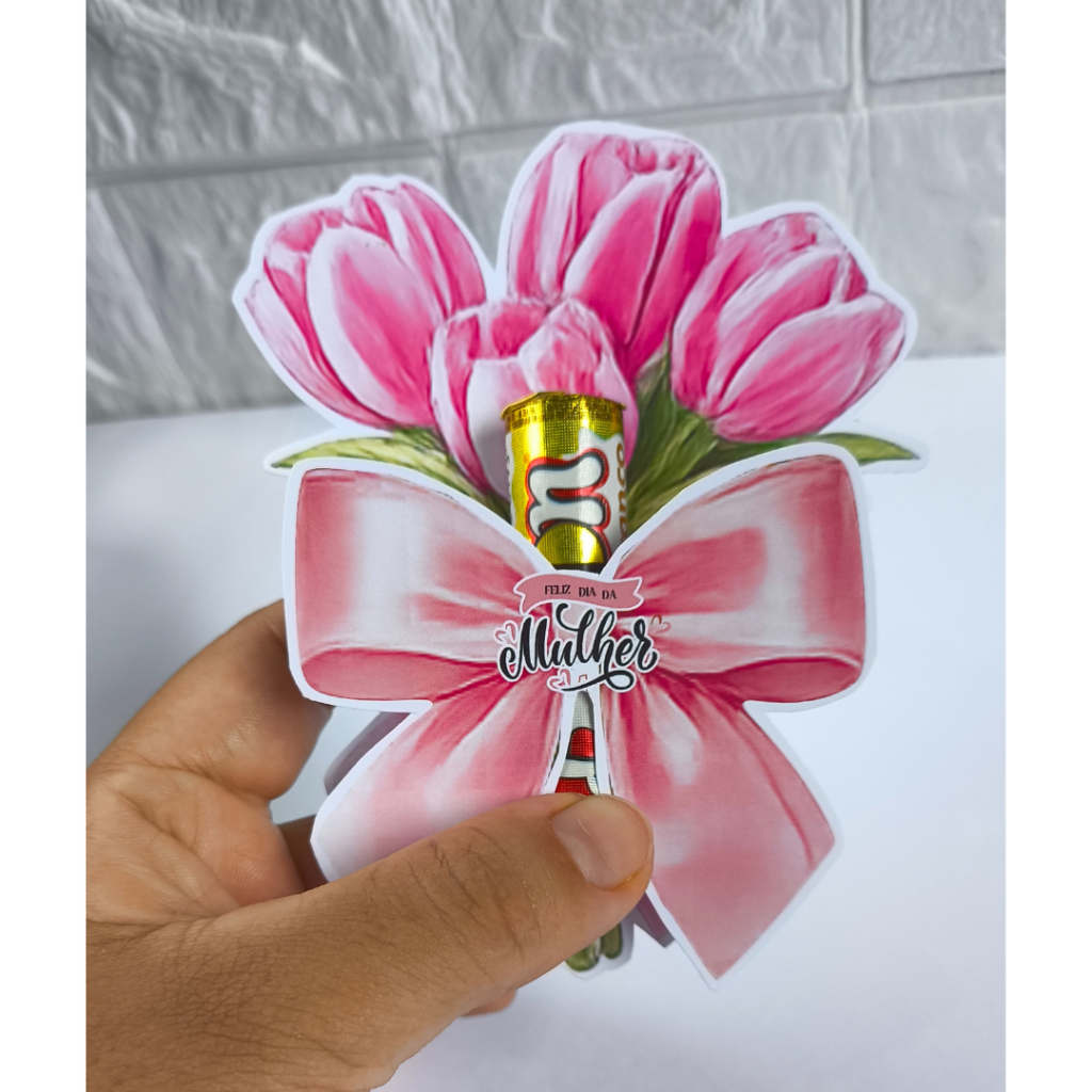 Transforme um simples mimo em uma homenagem especial. O Card Buquê Tulipas é perfeito para encaixar: ✔ Batom ✔ Manteiga de cacau ✔ Lápis ✔ Chocolate baton Ideal para empresas, igrejas, escolas e ações promocionais. 💗 Delicado, feminino e com visual encantador. ⚠ Produto refere-se apenas ao card (item interno não incluso).
