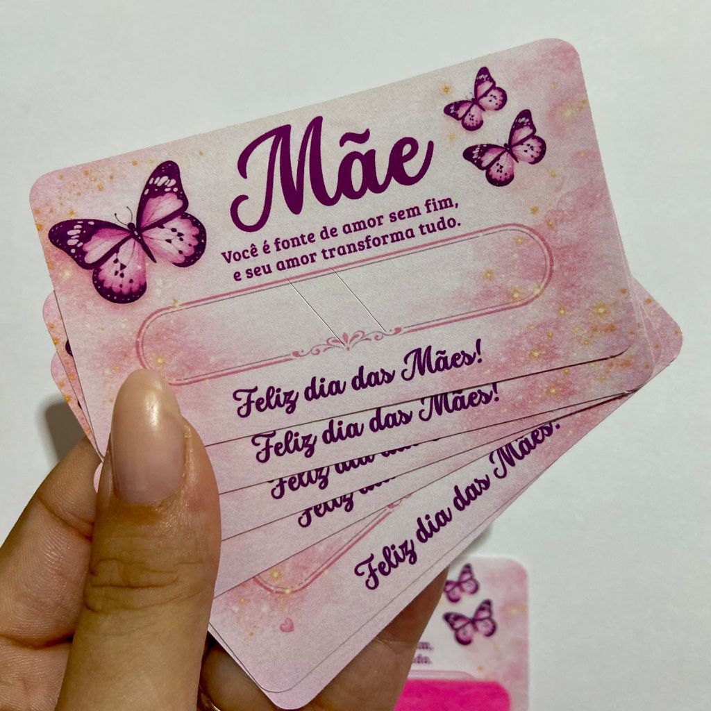 🌸 Card com Lixa –Lembrancinha Dia das Mães\ Mulheres 🌸 Pronta Entrega | Lembrancinha Delicada e Útil ✨ Produto pronta entrega ✨ Não é personalizado ✨ Acompanha a lixa de unha Surpreenda no Dia das Mães\Mulheres com uma lembrancinha simples, elegante e cheia de carinho 💖 Nosso card acompanha lixa de unha e é perfeito para presentear clientes, funcionárias, amigas, igrejas e eventos corporativos. 📏 Especificações do Produto: ✔ Tamanho do card: 5 cm de altura x 9 cm de largura ✔ Tamanho da lixa 8 cm ✔ O card é feito em Papel offset de 180g (ótima firmeza e acabamento sofisticado) ✔ Impressão em alta qualidade ✔ Acompanha a lixa de unha Montagem fácil: O cartão já vai com o Corte para somente encaixar as mini lixas Os cartões não vão montados , pois pode ser danificados no transporte. Quando receber seu pedido é só encaixar a lixa diretamente no corte do card