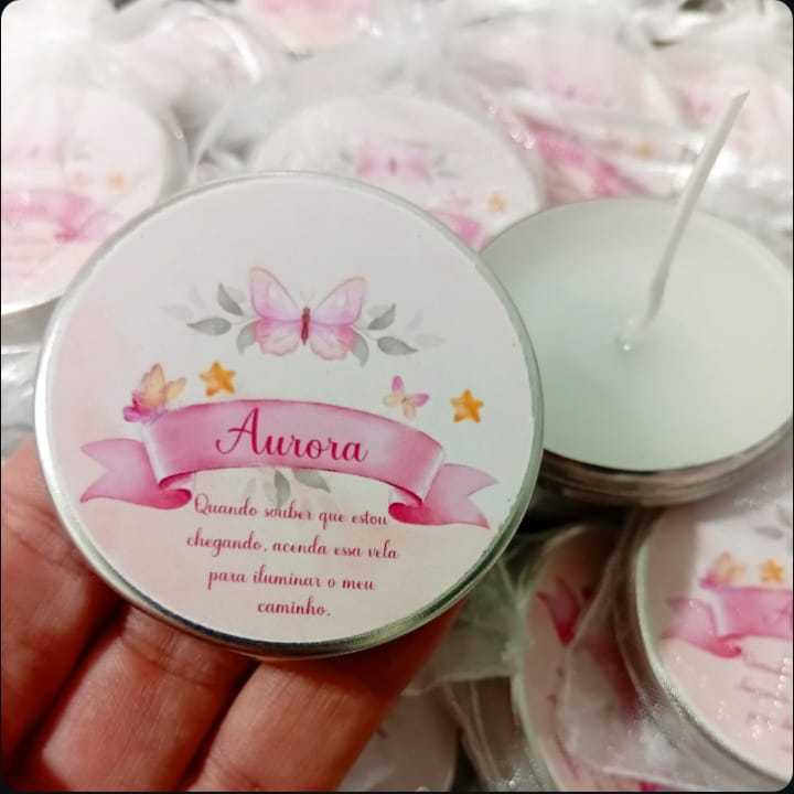 Lembrancinha Vela na Latinha Personalizado Maternidade, Chá de Bebê 50 unidades