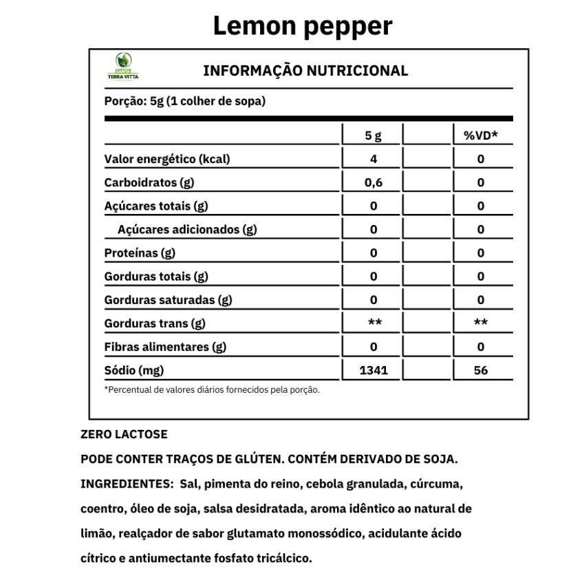 Mistura equilibrada de pimenta e limão, com aroma cítrico e sabor marcante. Ideal para temperar carnes, aves, peixes, legumes e molhos, realçando o sabor das receitas com um toque fresco e sofisticado. Ingredientes: Sal, pimenta do reino, cebola granulada, cúrcuma, coentro, óleo de soja, salsa desidratada, aroma idêntico ao natural de limão, realçador de sabor glutamato monossódico, acidulante ácido cítrico e antiumectante fosfato tricálcico. . ALÉRGICOS: PODE CONTER TRAÇOS DE GLÚTEN, LEITE, SOJA, AMENDOIM E CACAU POR CONTAMINAÇÃO CRUZADA. *INFORMAÇÕES ADICIONAIS* - EMBALAGEM MERAMENTE ILUSTRATIVA - PODE HAVER VARIAÇÃO DE COR DEPENDENDO DO LOTE. Entre em nossa loja e conheça outras opções de chás e ervas! Precisa de um produto que não conseguiu encontrar? Entre em contato conosco e iremos te ajudar. Contamos com uma grande linha de produtos!