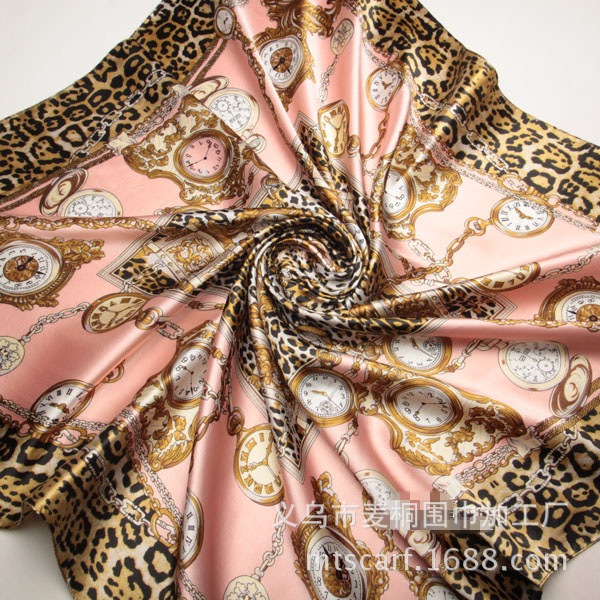 Lenço 50cm x 50cm Feminino Estampado de Leopardo Despertador Elegante Acetinado Cetim Para Cabelo Bolsa Pescoço Banada