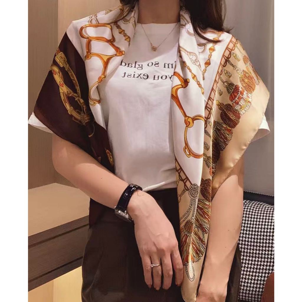 Lenço Cetim Estampado Moda Feminina Echarpe Faixa De Cabeça Seda Bandana Lenço da Moda Top 90cm x 90cm