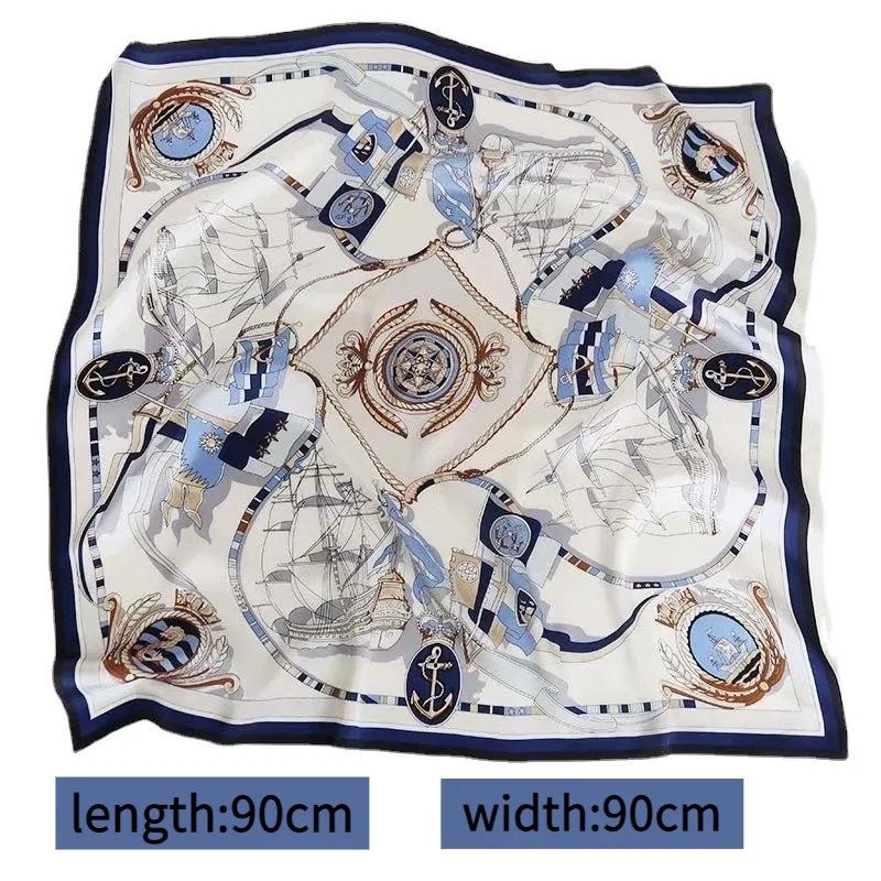 Lenço Com Estampa De Corrente Boêmia-Chique Marinho E Marfim – Faixa De Cabeça Xale Franjas De Cetim , Acessório De Moda