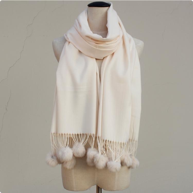【Lenço de caxemira grosso 200g】 Cachecol de caxemira calor espessado de dupla finalidade com pompom