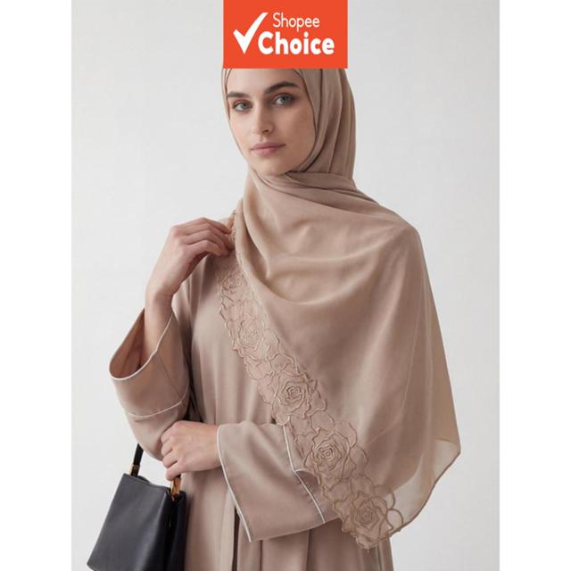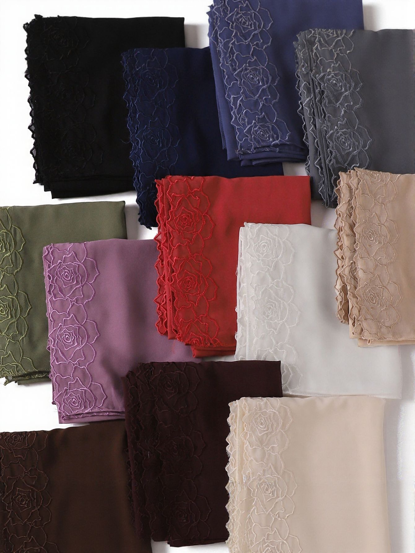 Lenço De Chiffon Bordado Com 1 Peça Xale Respirável De Alta Qualidade Para Mulheres Cabeça Da Moda