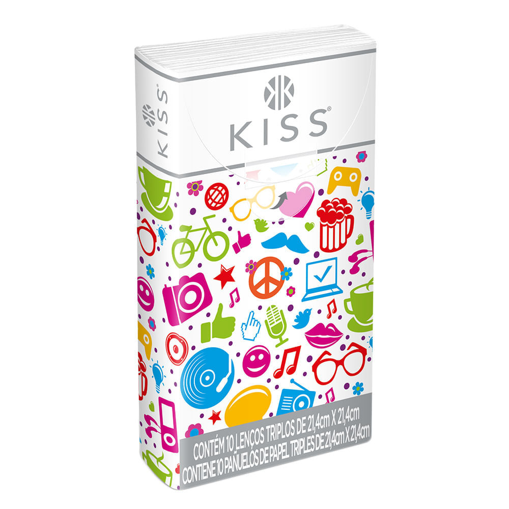 Lenço de Papel Kiss Bolso Embalagens Sortidas Folha Tripla com 10 Unidades