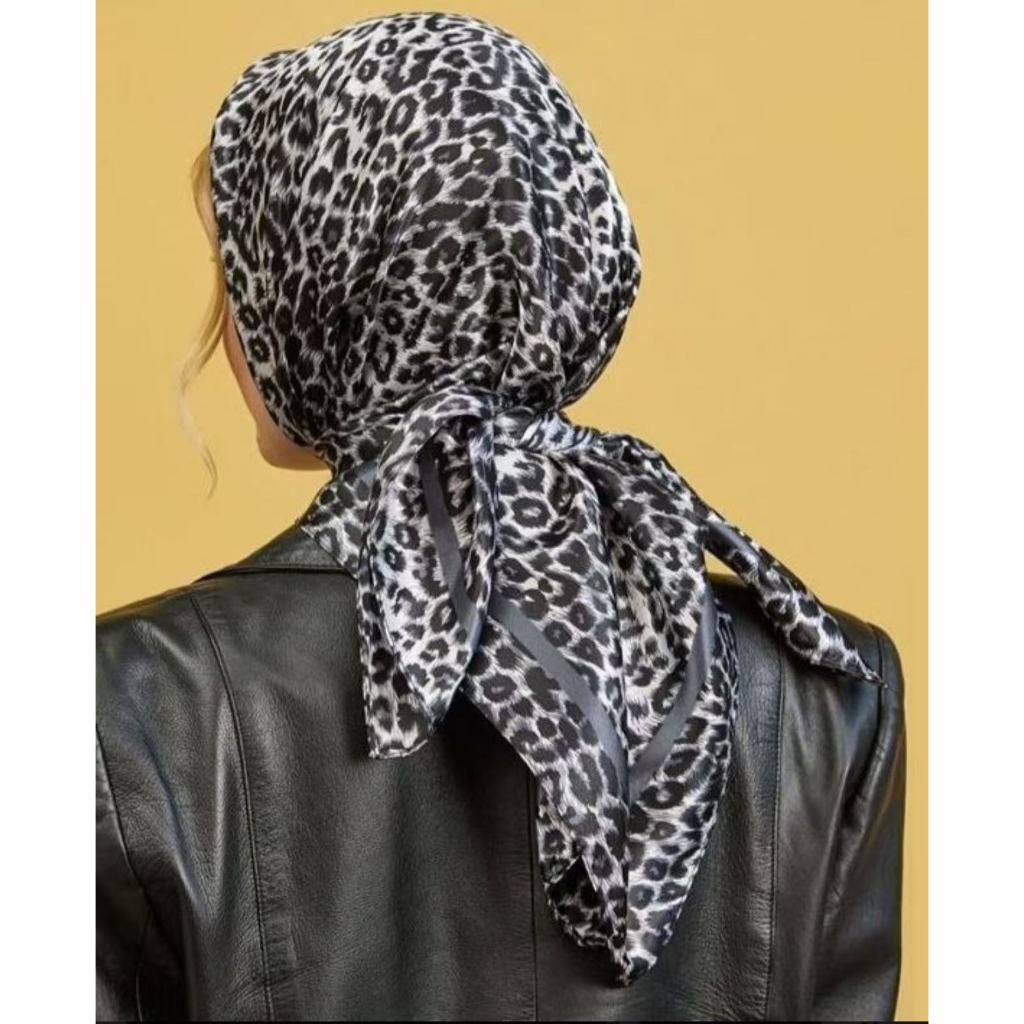 Lenço de Seda com Estampa de Onça (Animal Print) 90x90 - Lenço de Cabeça e Pescoço para Praia, Festa e Presente