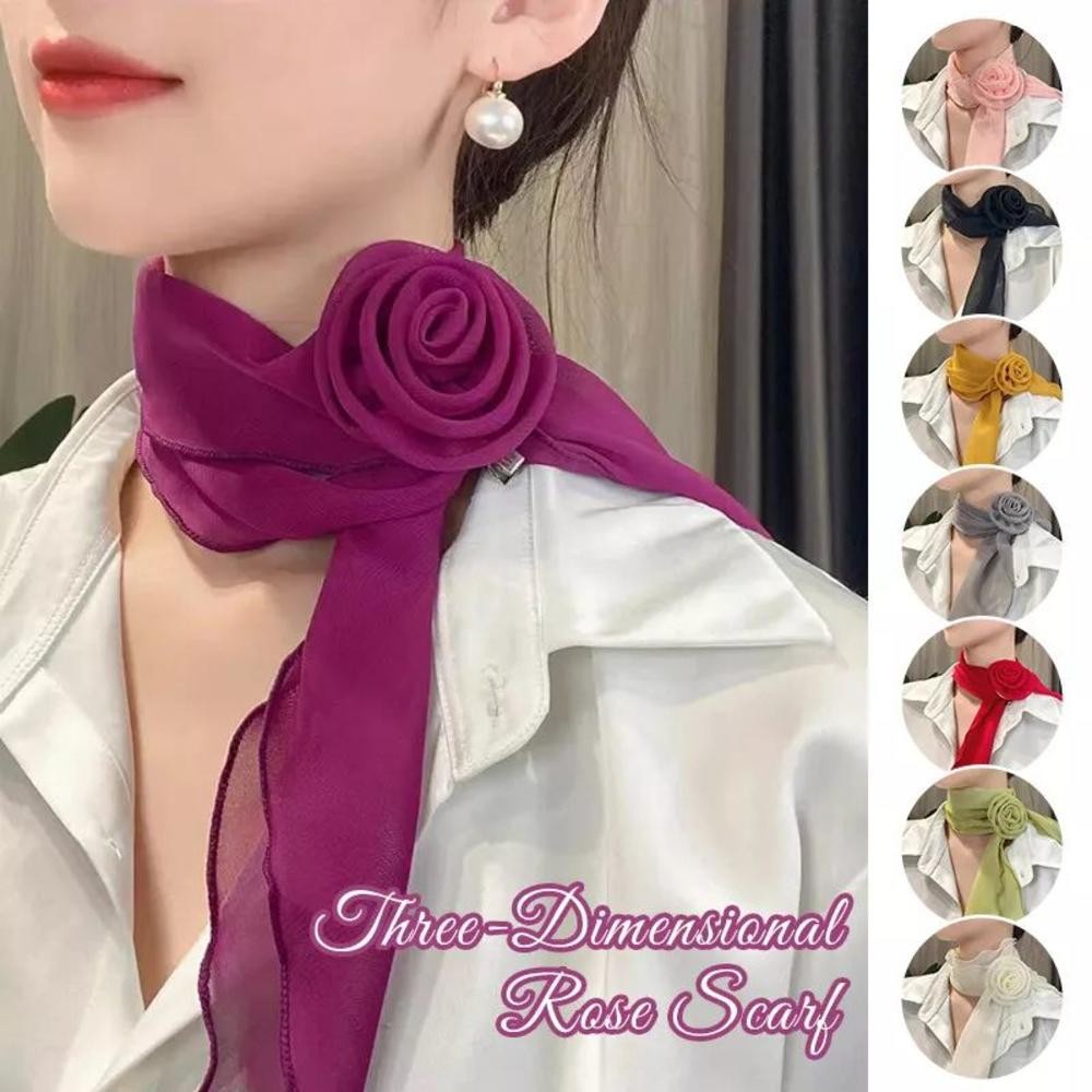 Lenço Feminino Destacável De Chiffon Com Flor Rosa – Longo E Elegante , Fita De Cabelo Versátil De Pescoço