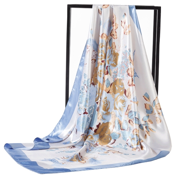 Lenço Quadrado 90x90cm Cetim Feminino Floral Retrô Estilo Elegante Luxo Para Pescoço, Ombro e Bolsa
