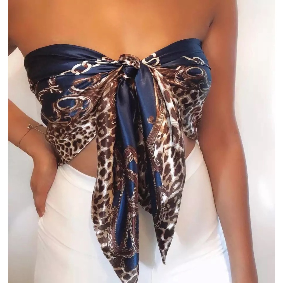 Lenço Seda Pescoço Echarpe Cetim Estampas Leopardo 90cmx90cm