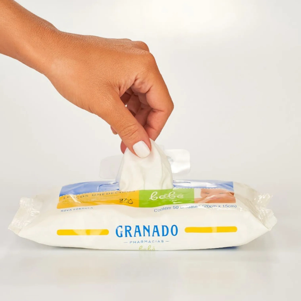Lenço Umedecido Bebê Tradicional Granado - 50 Unidades Os lenços umedecidos Granado Tradicional são ideais para a higiene diária do bebê, proporcionando limpeza eficaz e hidratação. Com uma fórmula suave e dermatologicamente testada, garantem segurança e conforto a cada uso. Principais Características: - Fórmula Suave e Segura: Desenvolvido especialmente para a pele delicada do bebê, sem ingredientes agressivos. - Hidrata e Protege: Contém agentes hidratantes que ajudam a manter a pele macia e protegida contra o ressecamento. - Livre de Álcool e Parabenos: Maior segurança e prevenção de irritações, ideal para uso frequente. Benefícios: - Limpeza eficiente sem agredir a pele. - Textura macia e suave ao toque. - Embalagem prática para o dia a dia. - Pode ser utilizado em todo o corpo do bebê. Diferenciais do Produto: - Desenvolvido por uma marca tradicional em cuidados infantis. - Dermatologicamente testado. - Embalagem com tampa flip-top para maior conservação dos lenços. Especificações Técnicas: - Peso: 312g (aproximado) - Quantidade: 50 lenços Instruções de Uso: - Retire um lenço umedecido da embalagem e passe suavemente sobre a pele do bebê para limpar e hidratar. - Feche bem a embalagem após o uso para evitar o ressecamento dos lenços. Avisos e Precauções: - Uso externo. - Não aplicar sobre a pele irritada ou ferida. - Manter fora do alcance de crianças. - Em caso de contato com os olhos, enxaguar com água abundante. O que está incluso? - 1 Pacote com 50 lenços umedecidos Granado Tradicional. ---- Dúvidas Frequentes ---- Os produtos são originais? Sim. Todos os nossos produtos são originais. Emitem nota fiscal? Sim. Emitimos nota fiscal para todos os pedidos.