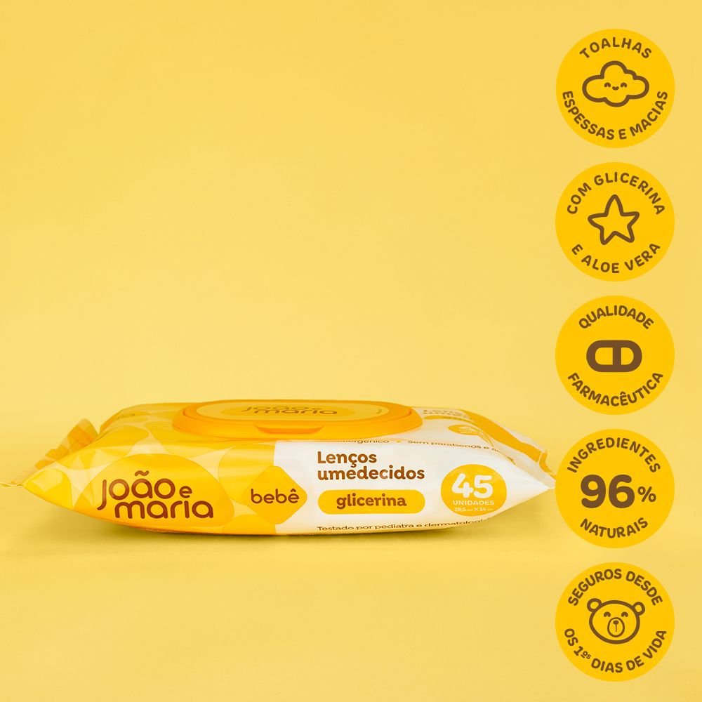 Lenços Umedecidos João e Maria Bebê – Glicerina 45 Unidades Os Lenços Umedecidos João e Maria Bebê são perfeitos para a higiene diária do seu pequeno, garantindo limpeza suave e refrescante. Enriqueci