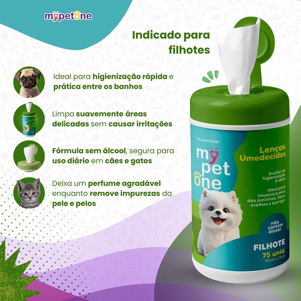 Lenço Umedecido Filhotes Mypetone - 75 Unidades