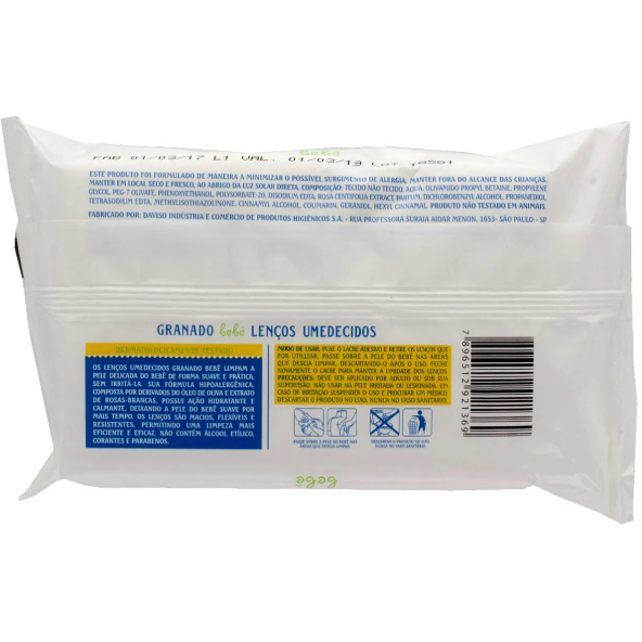 Lenço Umedecido Granado Bebê 50 Unidades – Hipoalergênico e Sem Álcool