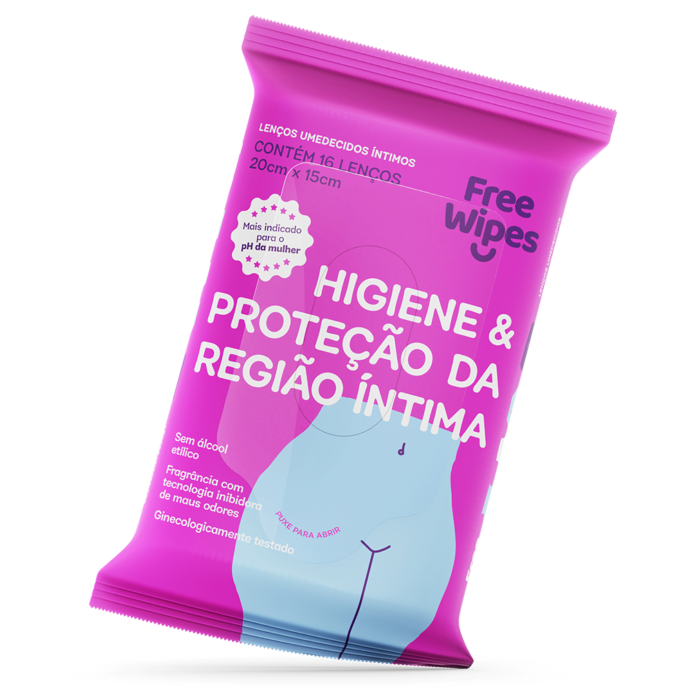 Os lenços umedecidos Free Wipes são perfeitos para a higiene e proteção da região íntima feminina, pois é o mais indicado para o controle do pH da mulher. Quando o assunto é higiene íntima feminina é preciso escolher pela confiança, eficiência e conforto. DIFERENCIAIS - Sem álcool etílico: Excelente escolha para a higiene íntima feminina, pois evitam o ressecamento e a irritação da pele, que pode ser sensível nessa região. A ausência de álcool torna o uso diário mais seguro e confortável, preservando o equilíbrio natural da pele sem comprometer sua integridade. - Inibidor de odores indesejados; Ajudam a manter a frescura ao longo do dia, proporcionando maior confiança. Eles atuam de forma suave, eliminando o desconforto com odores sem interferir no equilíbrio natural do corpo, algo essencial para a rotina de cuidados íntimos. - Ginecologicamente testado: Os testes asseguram que o produto foi avaliado por especialistas, minimizando riscos de reações adversas e garantindo que ele seja adequado para o uso íntimo feminino, o que aumenta a confiança do público-alvo ao escolher este tipo de produto. Uma garantia extra de segurança e qualidade. MODO DE USO Abrir a etiqueta autoadesiva no local indicado. Retire o lenço puxando pelo centro. Passe nas áreas que desejar limpar. Após o uso, descarte o lenço no lixo. Mantenha sempre a etiqueta autoadesiva fechada entre um uso e outro, para conservar a umidade do produto. FRASE DE ADVERTÊNCIA Aplicar somente nos órgãos genitais externos. Não ingerir. Manter o produto fora do alcance das crianças. Manter em local fresco, arejado, ao abrigo de luz solar direta e dentro da embalagem original fechada. Para evitar o ressecamento do produto, fechar a embalagem cuidadosamente após o uso. Caso tenha hipersensibilidade a algum dos componentes da fórmula ou pele irritada, não utilize o produto. Havendo irritação, suspenda o uso e procure orientação médica. O excesso de uso do produto, pode ser uma fonte de irritação genital.