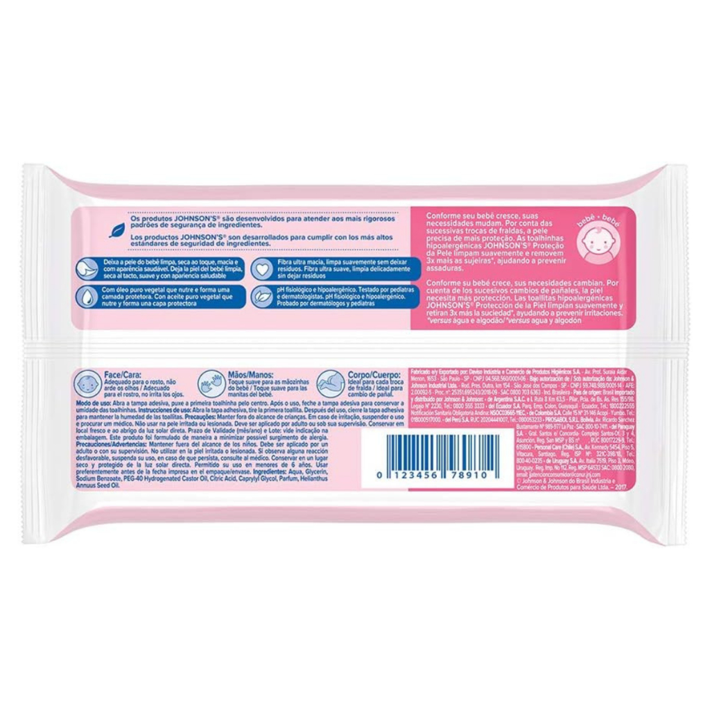 Lenço Umedecido Johnson's Baby Extra Cuidado com 48 Unidades – Limpeza suave e segura para a pele do bebê Desenvolvido especialmente para atender às necessidades da pele sensível dos bebês, o Lenço Umedecido Johnson's Baby Extra Cuidado oferece limpeza eficiente e delicada desde os primeiros dias de vida. Sua fórmula suave e livre de substâncias agressivas proporciona conforto e proteção durante todo o dia. Principais Características: - Fórmula hipoalergênica, sem álcool e sem fragrância:Ideal para a pele delicada do bebê, reduz o risco de irritações e alergias. - Textura macia e resistente:Os lenços têm toque suave e não se desfazem facilmente, proporcionando limpeza eficaz com conforto. - Tecnologia Chega de Lágrimas®:Permite o uso seguro em todo o corpo, inclusive no rosto, sem causar ardência nos olhos. Benefícios: - Limpeza prática, segura e delicada em qualquer momento do dia. - Mantém a pele hidratada e protegida. - Ideal para trocas de fralda, limpeza das mãos e do rosto. - Pode ser usado por recém-nascidos. Diferenciais do Produto: - Desenvolvido por especialistas, com testes dermatológicos e pediátricos. - Livre de fragrâncias, corantes, parabenos e álcool etílico. - Recomendado por pediatras. - Embalagem prática com sistema abre e fecha que conserva a umidade dos lenços. Especificações Técnicas: - Peso: 306g (embalagem com 48 unidades) Instruções de Uso: - Abra a tampa adesiva, retire um lenço e passe suavemente sobre a pele do bebê. - Após o uso, feche a embalagem adequadamente para conservar a umidade do produto. Avisos e Precauções: - Uso externo. - Não descartar no vaso sanitário. - Manter fora do alcance de crianças. - Em caso de irritação, suspender o uso e procurar orientação médica. - Conservar em local seco, arejado e longe da luz solar direta. O que está incluso? - 1 Lenço Umedecido Johnson's Baby Extra Cuidado com 48 Unidades ---- DÚVIDAS FREQUENTES ---- Os produtos são originais? Sim. Todos os nossos produtos são originais. Emitem nota fiscal? Sim. Emitimos nota fiscal para todos os pedidos.
