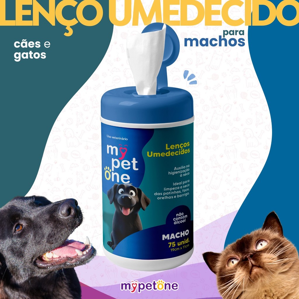 Lenço Umedecido Machos 75 Unidades Para Cães e Gatos Mypetone