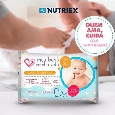 Lenço umedecido meu bebê minha vida Nutriex com extrato de algodão e óleo de amêndoas