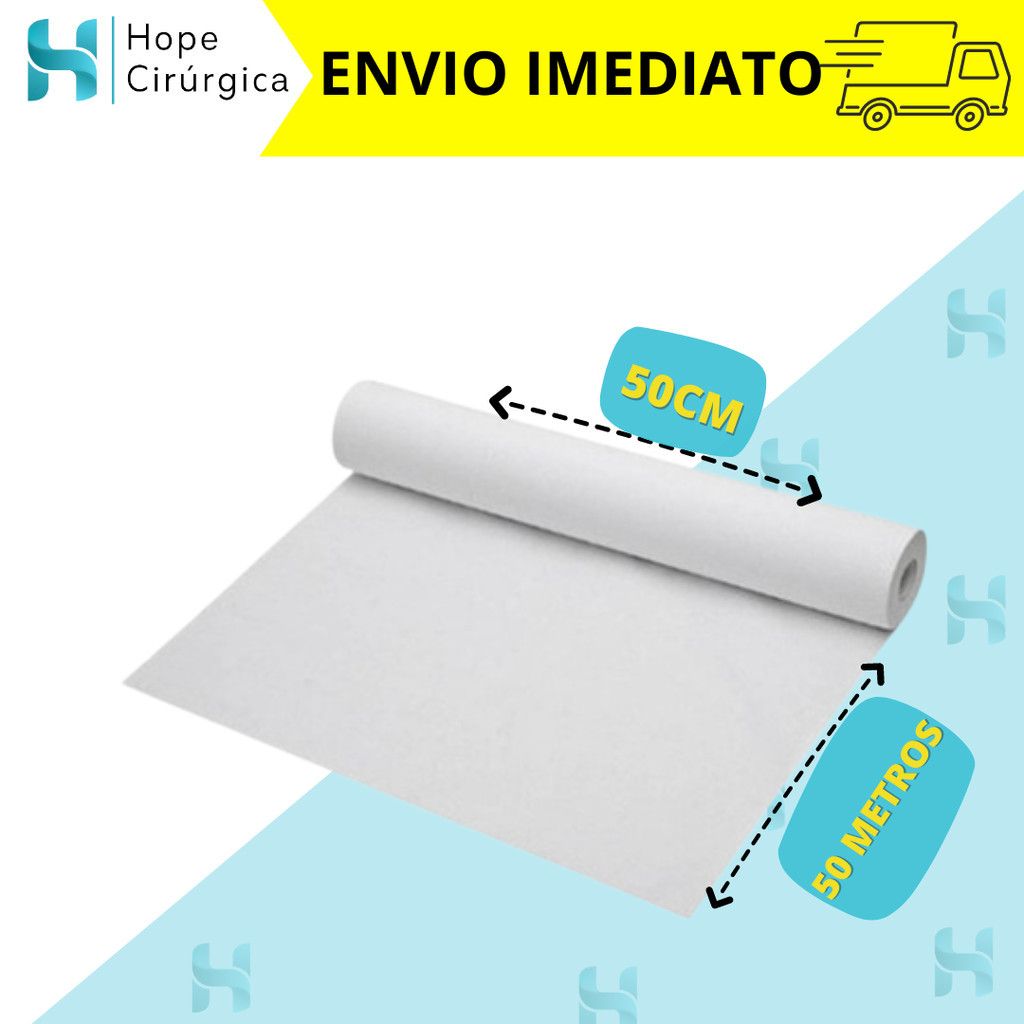 Lençóis Descartável - Papel Hospitalar para Maca 50x50 - Branco Natural