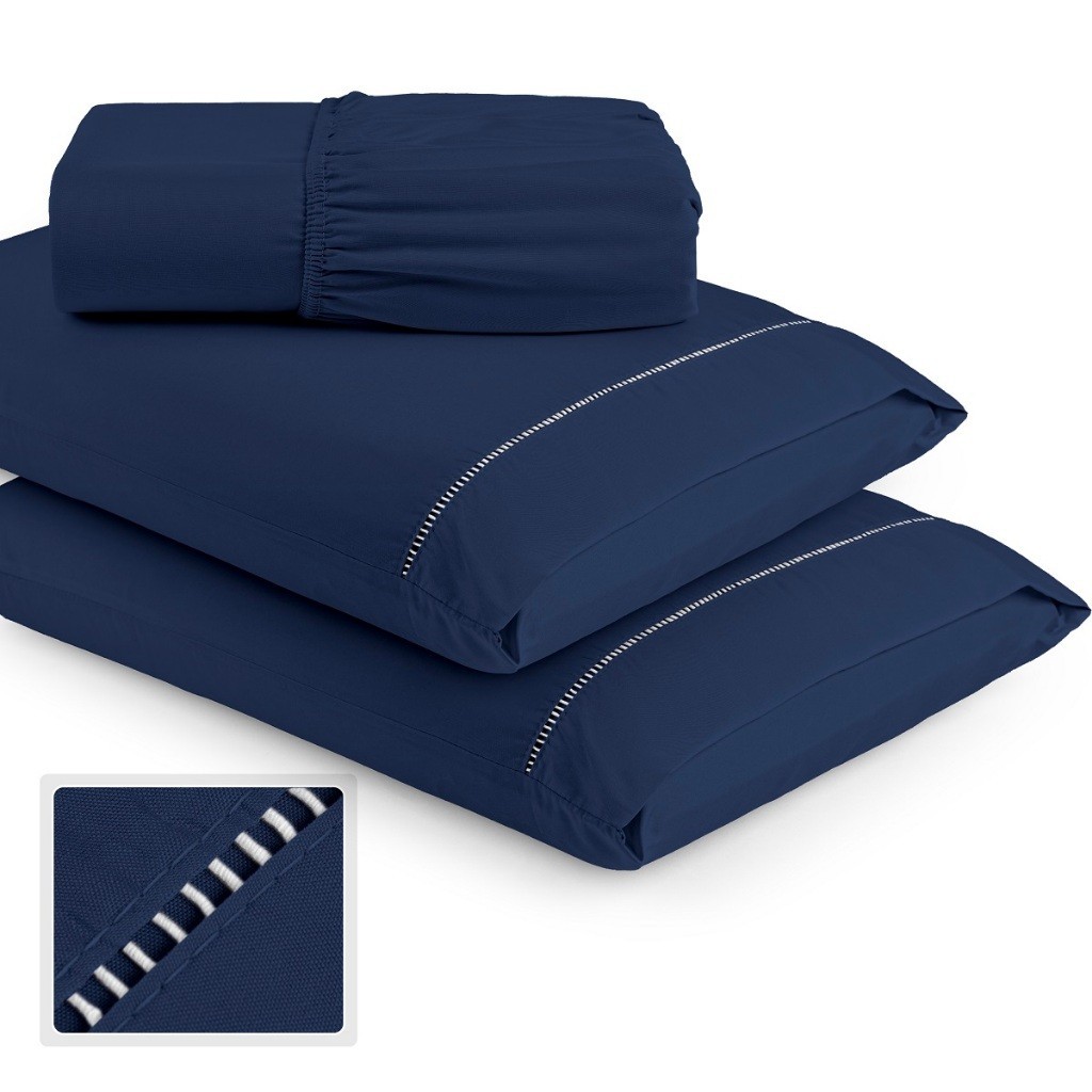 Lençol 400 Fios Micropercal Ponto Palito Tecido Acetinado Macio